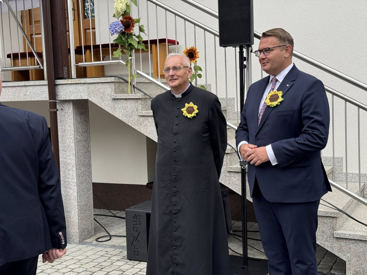Po nabożeństwie uczestnicy udali się na plac przy kościele, gdzie odbyła się główna część uroczystości. Burmistrz Miasta i Gminy Myślenice, Jarosław Szlachetka, powitał zgromadzonych gości, dziękując rolnikom za ich codzienny trud, a mieszkańcom za liczny udział i podtrzymywanie pięknej tradycji dożynkowej.