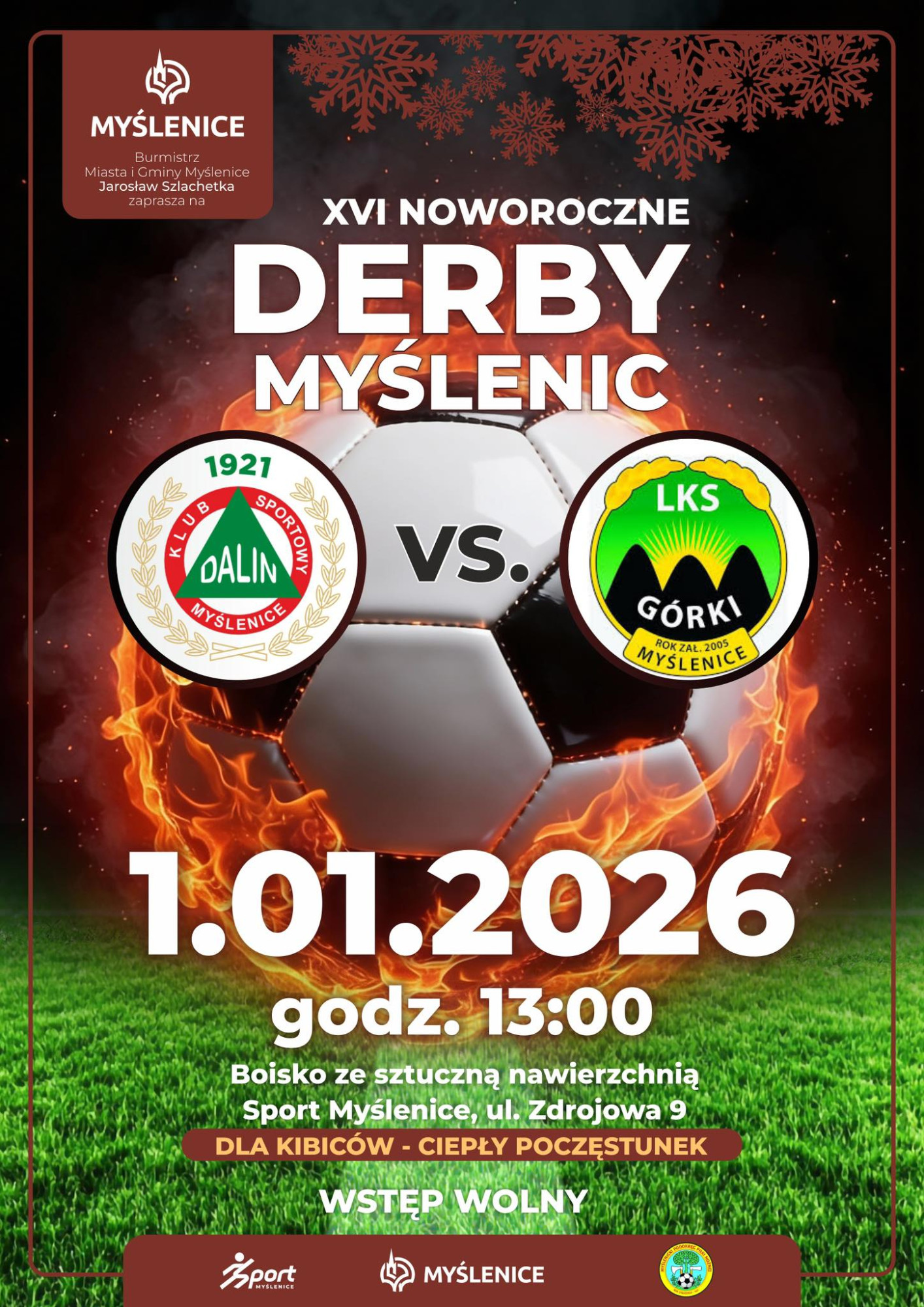 Burmistrz Miasta i Gminy Myślenice Jarosław Szlachetka zaprasza już 1 stycznia 2026 kibiców na XVI Noworoczne Derby Myślenic – wydarzenie, które od lat przyciąga mieszkańców miasta i okolic.