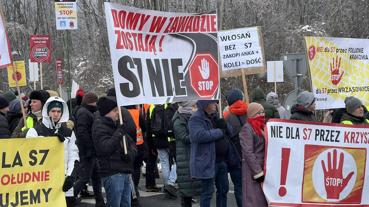 W sobotę 10 stycznia 2026 r. na Zakopance w Głogoczowie mieszkańcy kolejny raz protestowali przeciwko przedstawionym przez GDDKiA wariantom przebiegu drogi S7 Myślenice - Kraków.