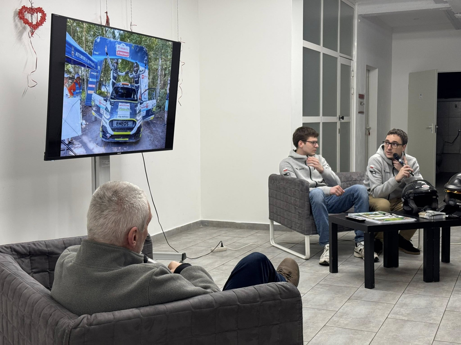 Rozmowę poprowadził dziennikarz i pilot rajdowy Maciej Hołuj, pomysłodawca spotkania. Kierowca i pilot opowiedzieli o drodze na europejski szczyt, kulisach swojej współpracy oraz najważniejszych momentach minionego sezonu. Nie zabrakło ciekawostek z tras rajdowych i pytań od publiczności.