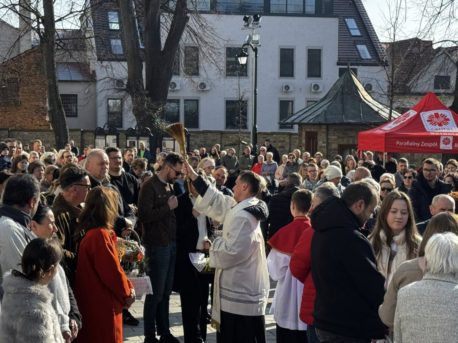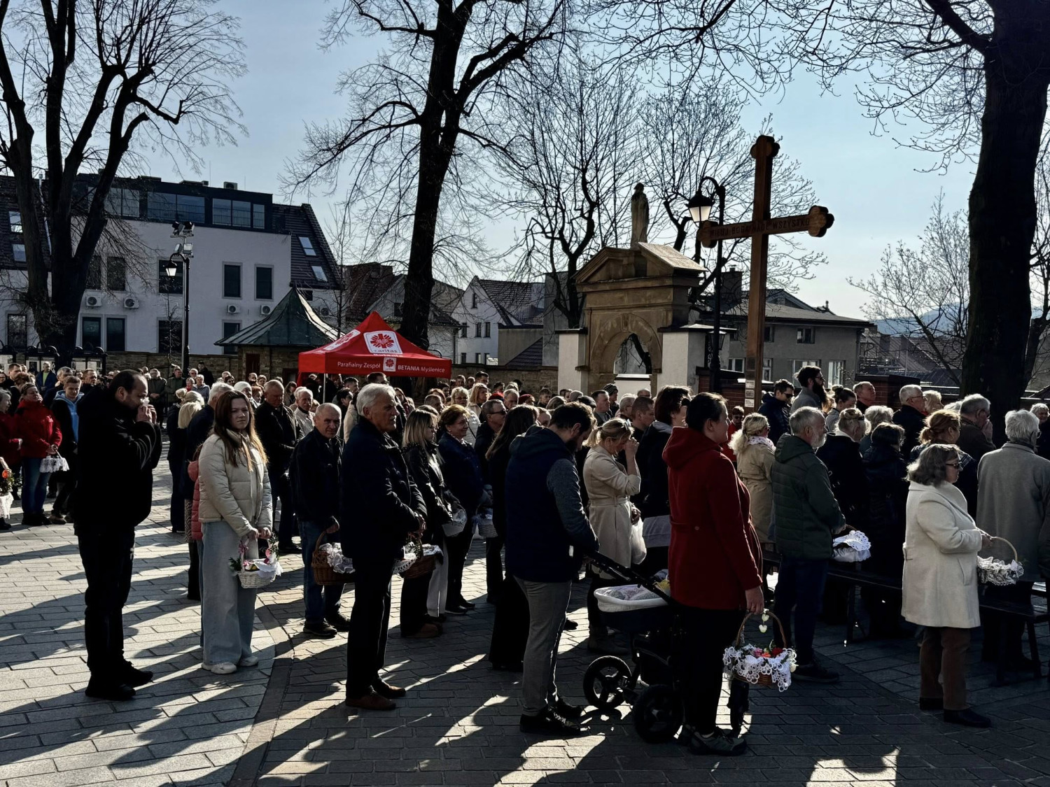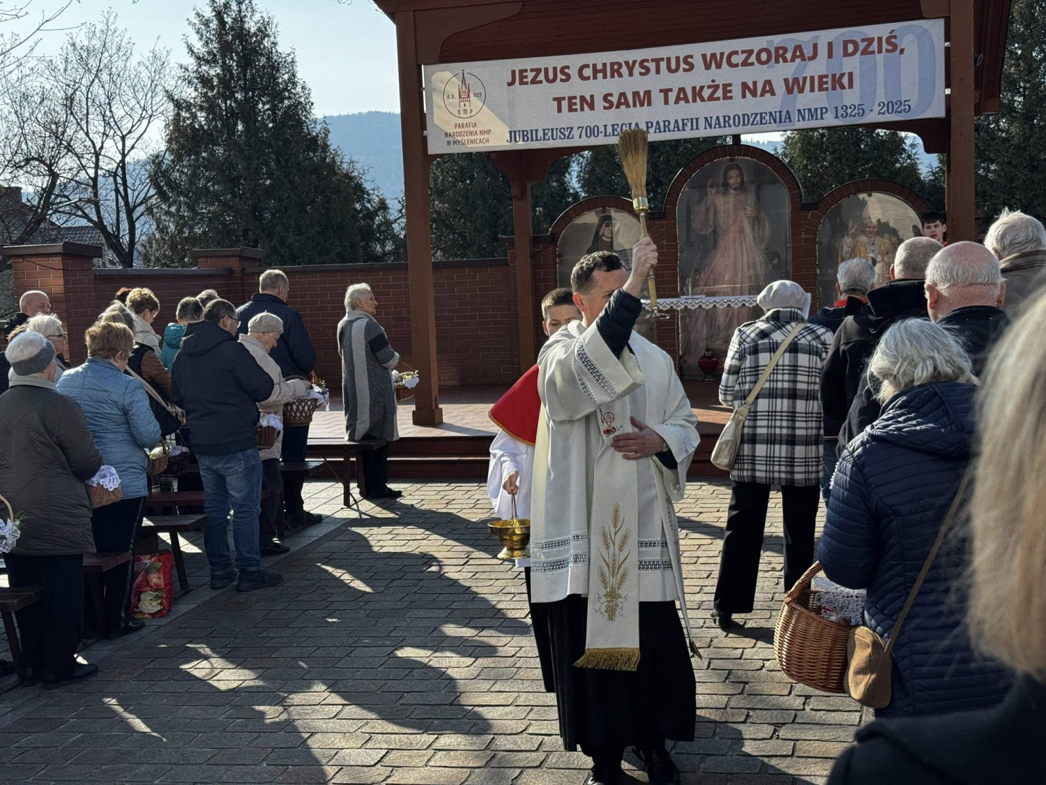 W Wielką Sobotę, 4 kwietnia, w Sanktuarium Pani Myślenickiej odbyło się tradycyjne święcenie pokarmów. Wierni licznie przybywali do świątyni, niosąc koszyczki wypełnione wielkanocnymi pokarmami.