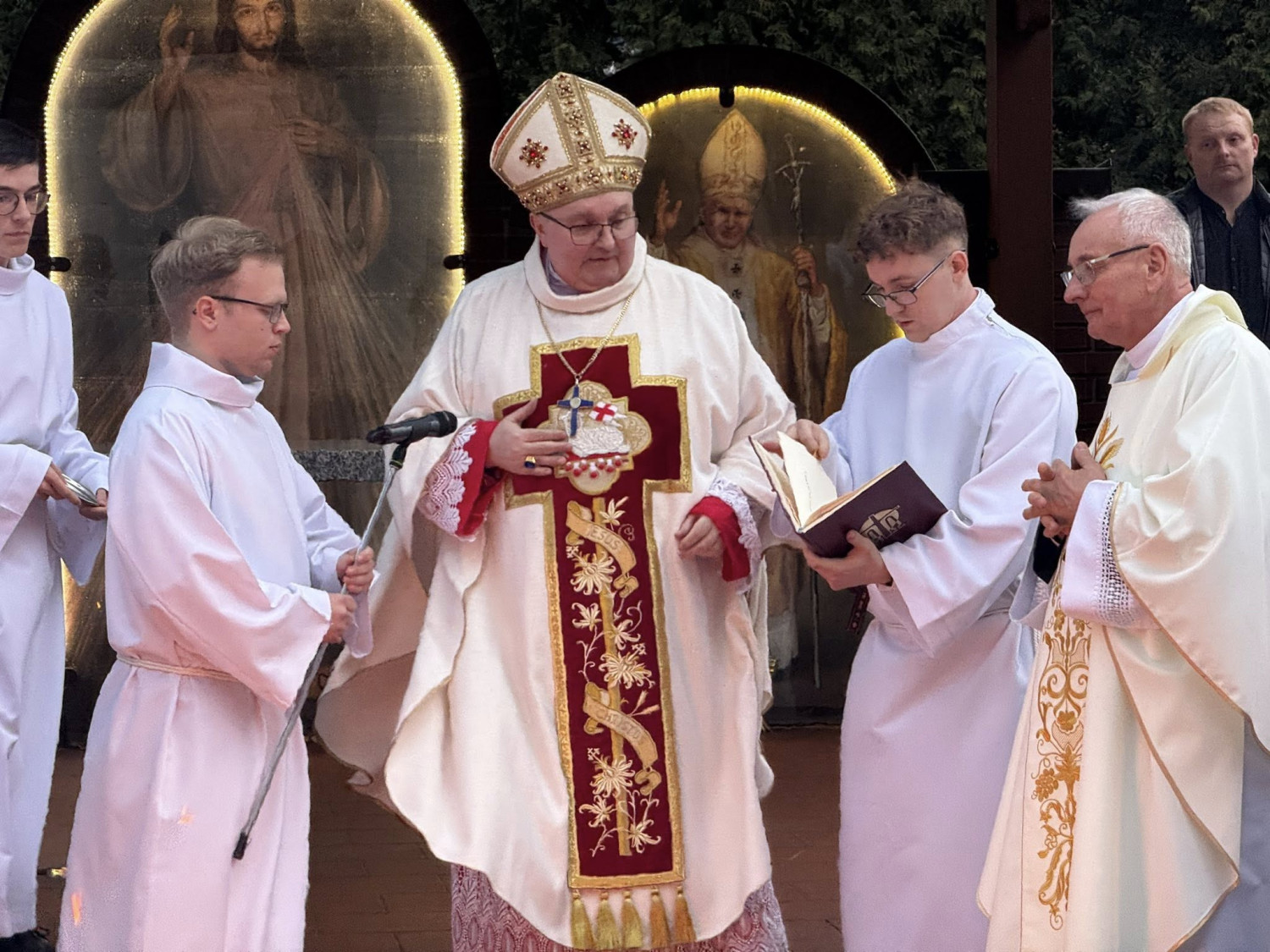 Celebracji przewodniczył ksiądz biskup Janusz Mastalski. W blasku paschału i przy śpiewie wielkanocnego orędzia, zgromadzeni wierni mogli na nowo doświadczyć prawdy o obecności Chrystusa, który przez swoje Zmartwychwstanie przynosi nadzieję i życie.