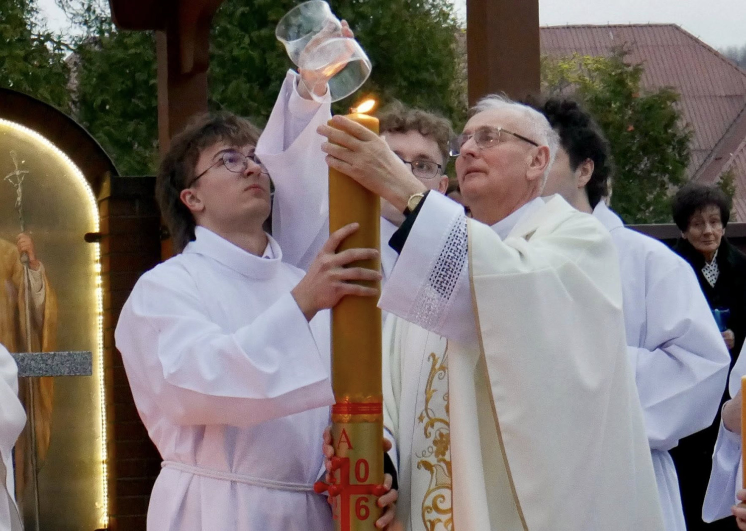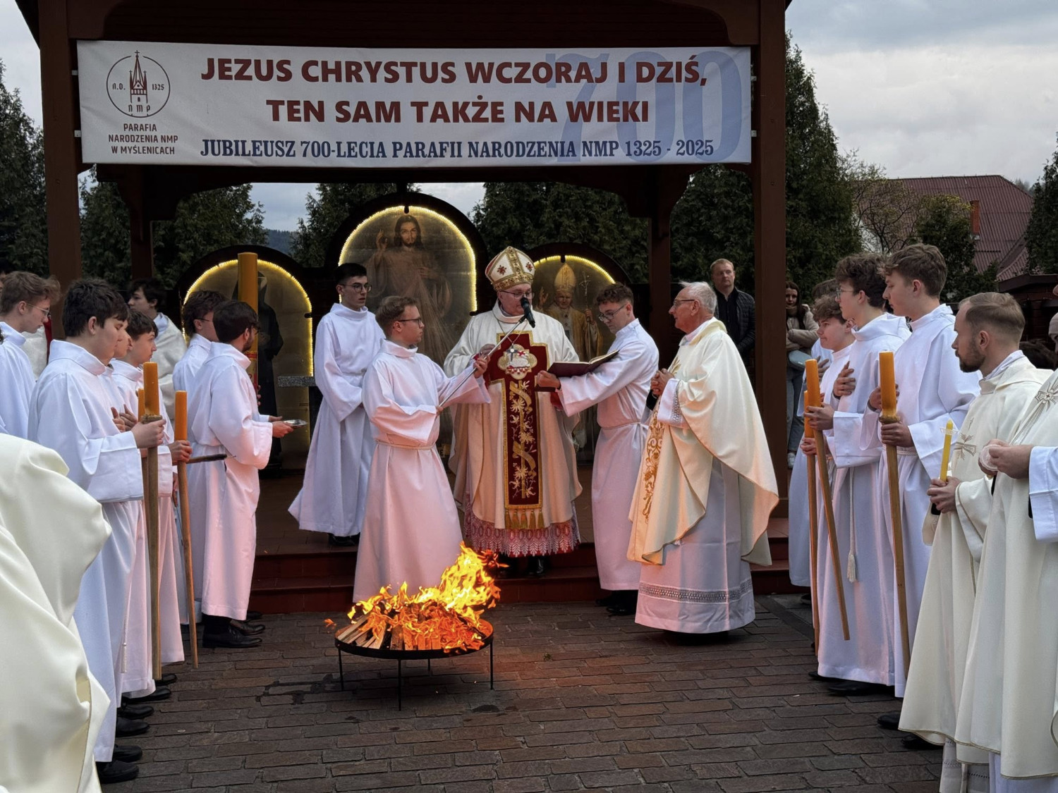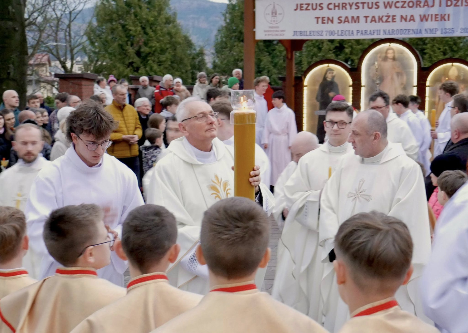 W sobotni wieczór, 4 kwietnia 2026 roku, w Sanktuarium Pani Myślenickiej się Wigilia Paschalna, najświętsza noc w roku liturgicznym. Liturgia światła, od której rozpoczęły się uroczystości, wprowadziła wiernych w głęboką tajemnicę zwycięstwa światła nad ciemnością.
