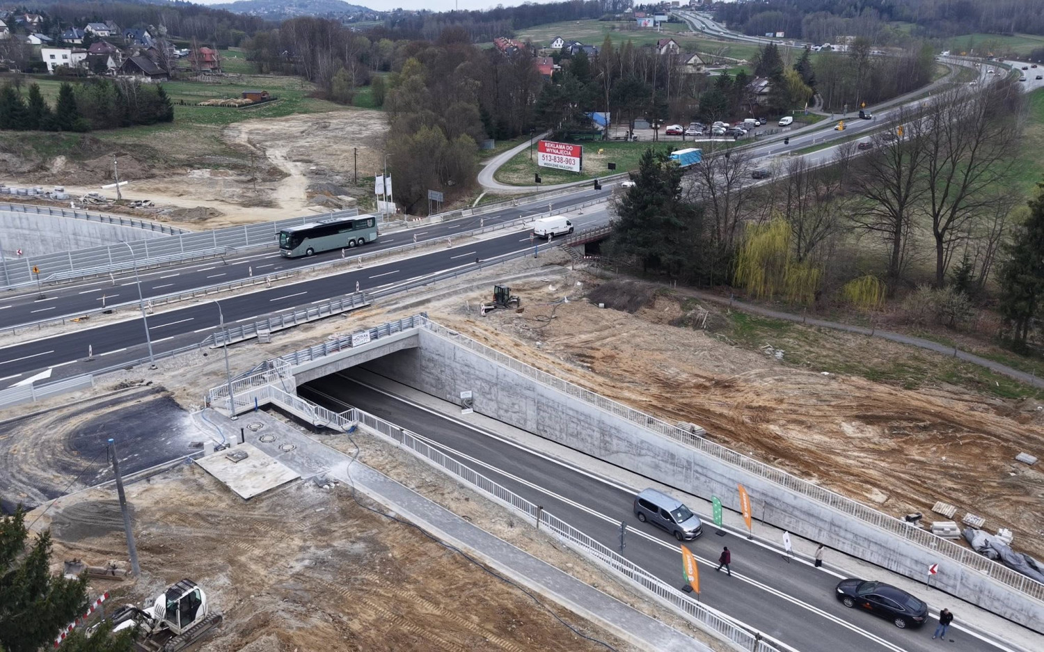 Od dziś kierowcy mogą już korzystać z nowego tunelu pod Zakopianką w Krzyszkowicach. Do ruchu oddano bezkolizyjny węzeł drogowy, który zastąpił dotychczasowe rozwiązania uznawane za jedne z najbardziej niebezpiecznych na tej trasie. Zniknęły problematyczne lewoskręty oraz przejście dla pieszych w poziomie jezdni, co od lat budziło duże obawy użytkowników drogi.