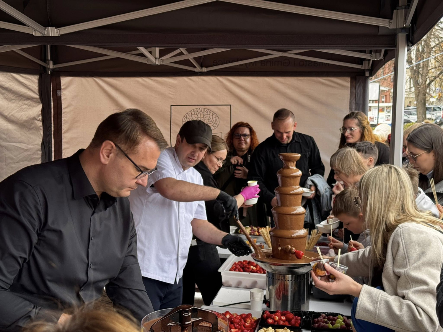 Ogromnym zainteresowaniem cieszyła się czekoladowa fontanna oraz gorąca czekolada, którą serwowoał sam burmistrz Jarosław Szlachetka. Nie brakowało także kreatywnych aktywności, takich jak dekorowanie ciasteczek, które przyciągało zarówno dzieci, jak i dorosłych. Najmłodsi uczestnicy mogli skorzystać z dmuchańca, co sprawiło, że wydarzenie miało także wyraźnie rodzinny charakter.