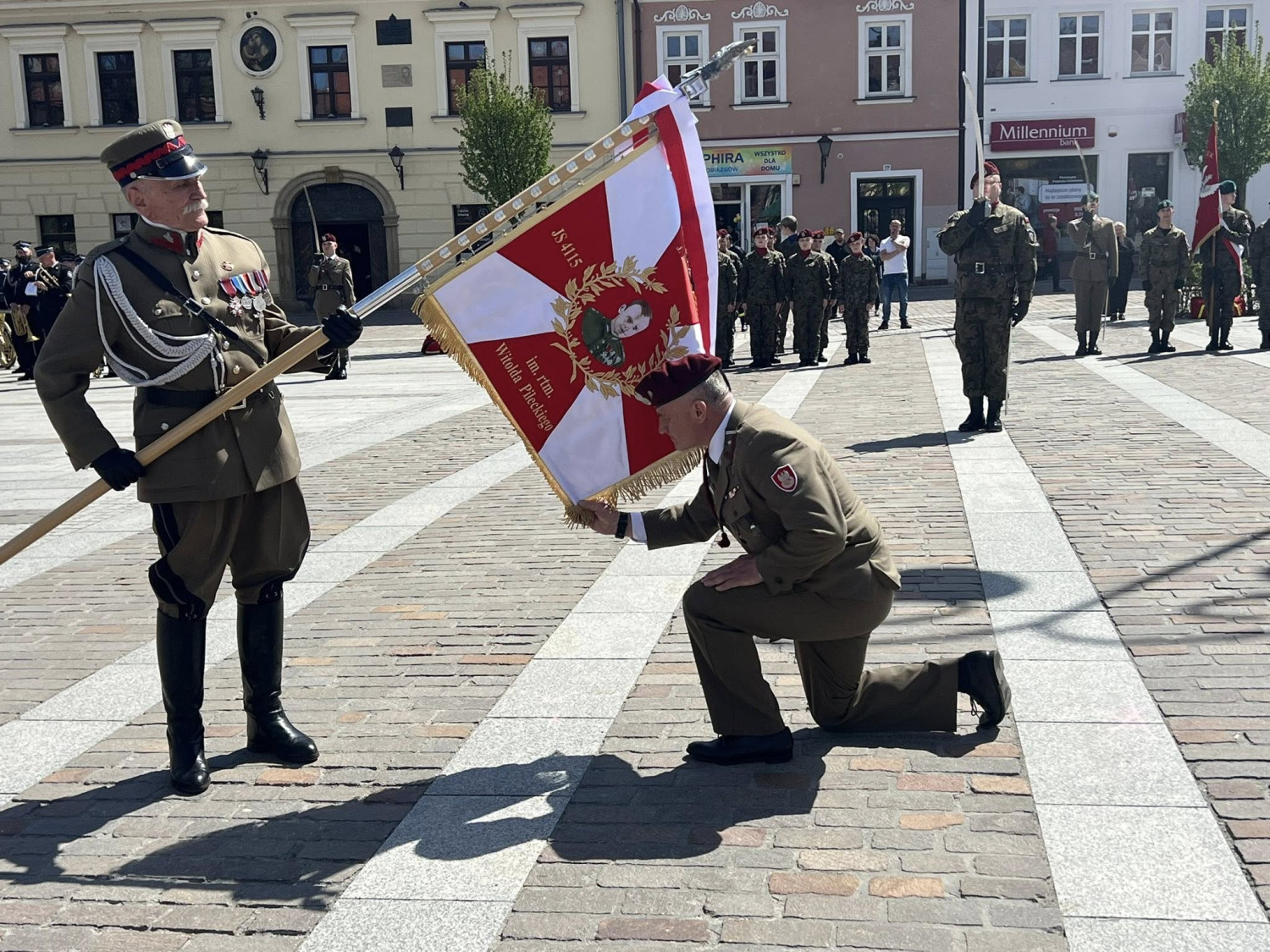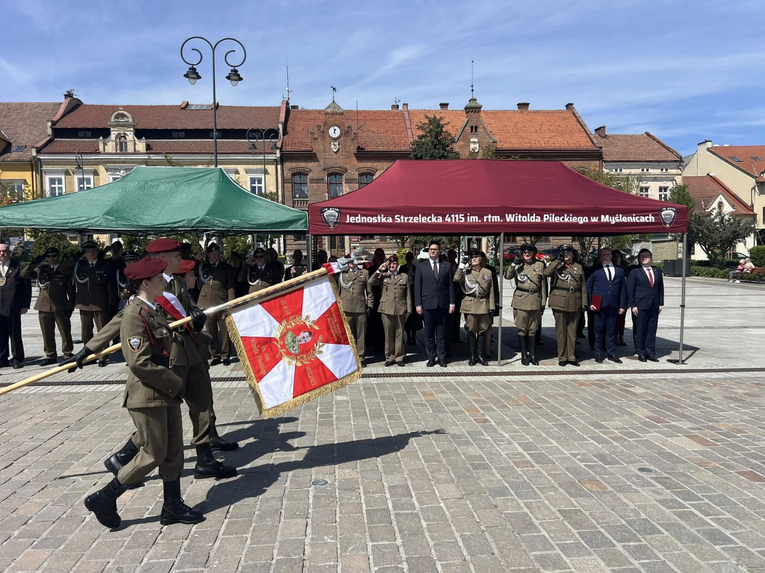 W sobotnie południe, 25 kwietnia 2026 r. Rynek w Myślenice stał się miejscem wyjątkowej uroczystości nadania sztandaru Jednostce Strzeleckiej 4115 im. rtm. Witolda Pileckiego w Myślenicach otrzymała sztandar, który od tej chwili będzie najważniejszym symbolem jej działalności i wartości.