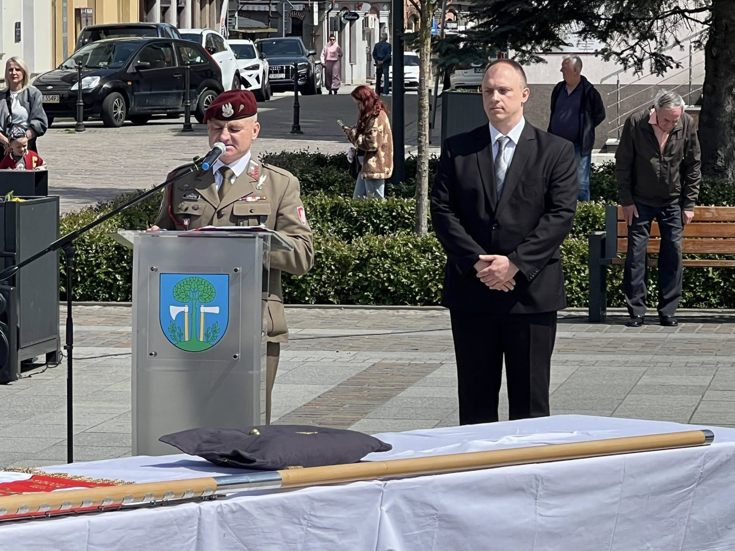 Ceremonia rozpoczęła się punktualnie o godzinie 12:00 uroczystym apelem z udziałem samorządowców, służb mundurowych, przedstawicieli organizacji społecznych oraz mieszkańców. Oprawa wydarzenia podkreślała rangę chwili. Nie zabrakło wojskowej musztry, pocztów sztandarowych i podniosłej atmosfery.