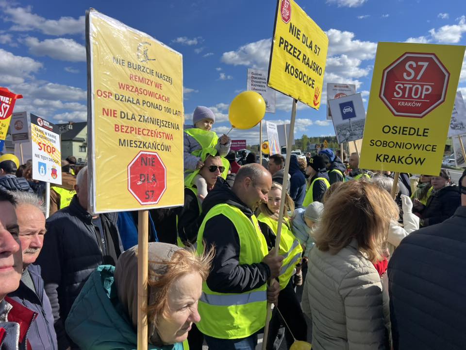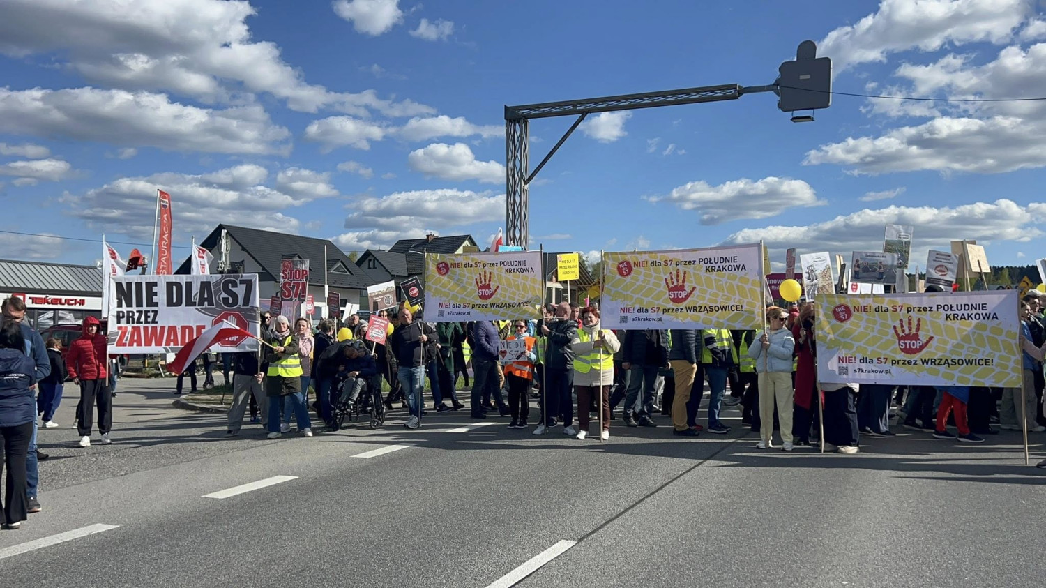 W niedzielę 26 kwietnia 2026 na Zakopiance w Głogoczowie mieszkańcy kolejny raz protestowali przeciwko planowanym rozwiązaniom drogowym przy projektowaniu drogi S7 na odcinku Kraków-Myślenice.