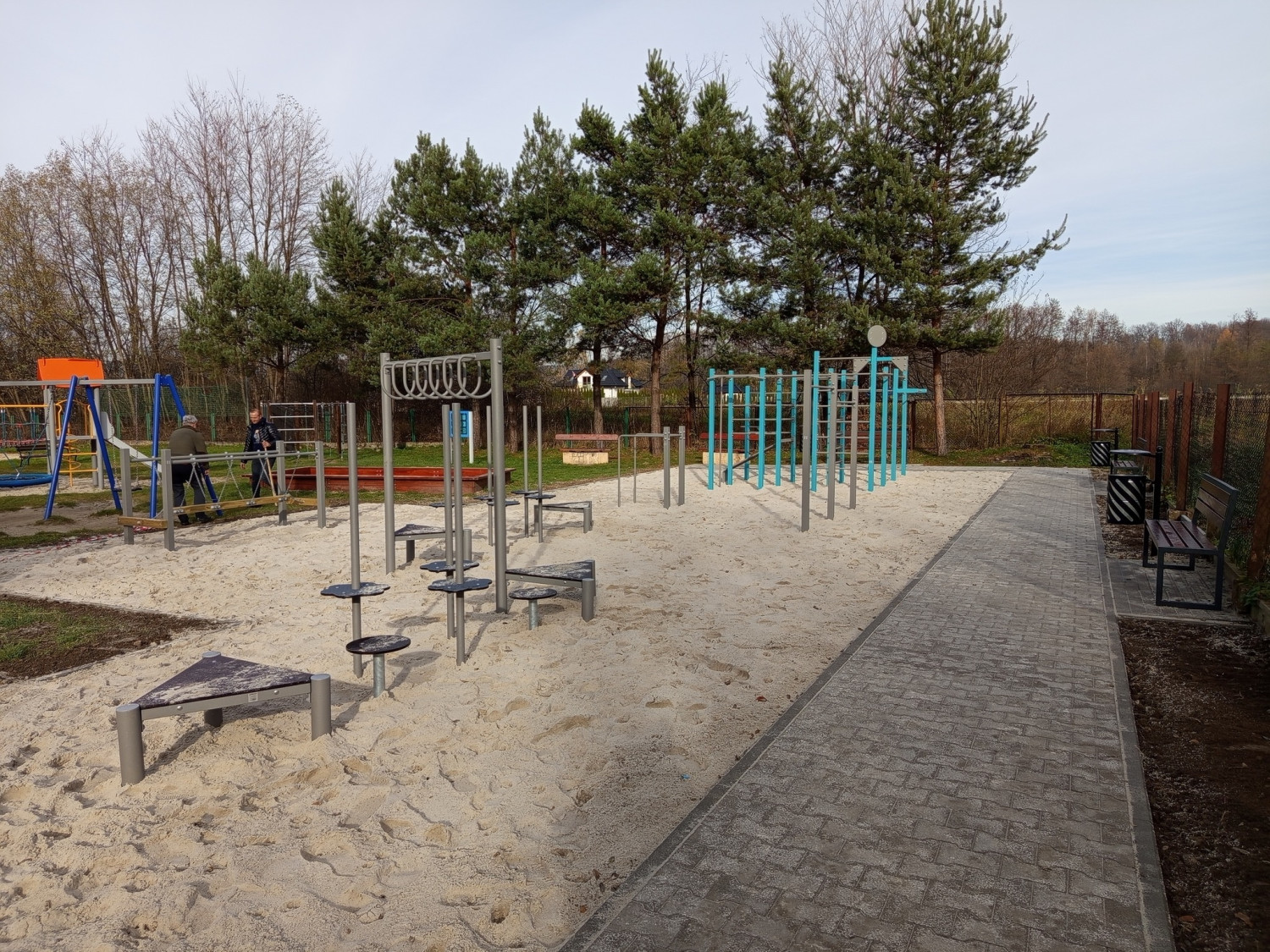 W ramach inwestycji wykonano nowe alejki spacerowe wokół zalewu, utwardzone masą asfaltową. Na sąsiadującym placu zabaw zamontowano również nowe urządzenia sprawnościowe typu Street Workout, w tym: ścieżkę sprawnościową, ruchomy pomost, drążki do podciągania, poręcze gimnastyczne oraz zestaw sprawnościowy.