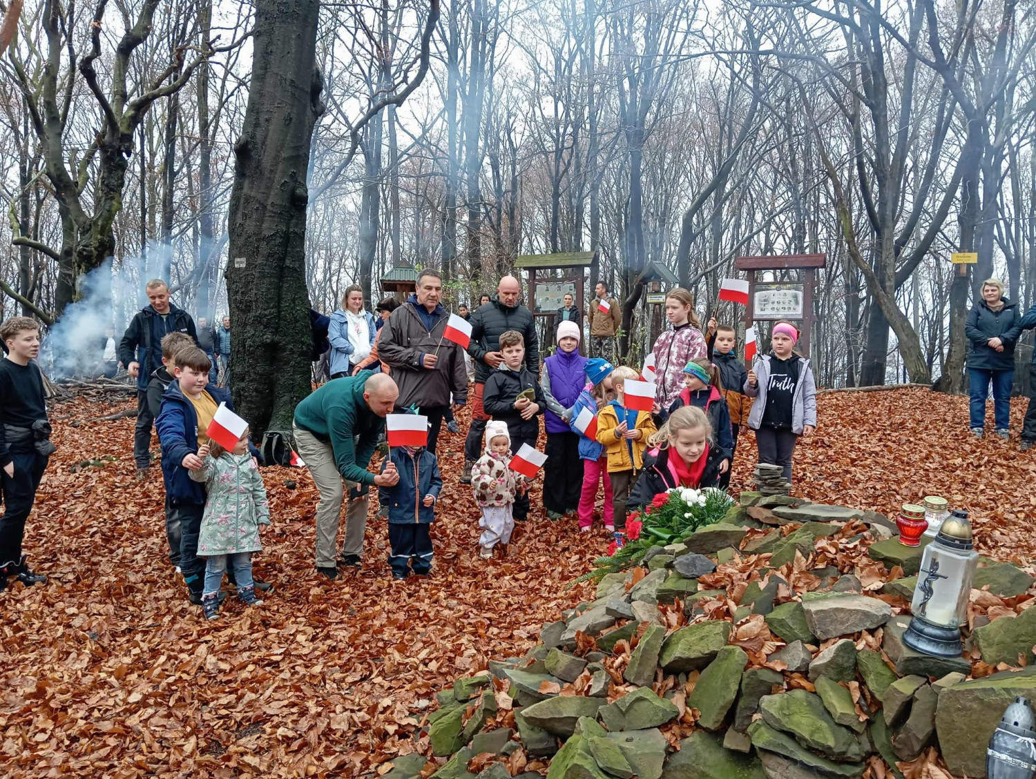 Wędrówka rozpoczęła się od złożenia kwiatów przy pomniku O.P. „Śmiałego”, a następnie uczestnicy ruszyli w stronę szczytu Grodziska. Tam uroczyście złożono biało-czerwoną wiązankę na symbolicznej mogile - tym razem dokonali tego najmłodsi mieszkańcy gminy. Ten gest szczególnie poruszył zebranych, przypominając, jak ważne jest przekazywanie pamięci historycznej kolejnym pokoleniom.