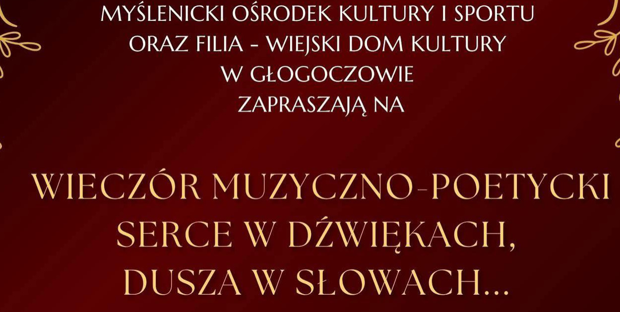Myślenicki Ośrodek Kultury i Sportu serdecznie zaprasza na wyjątkowy koncert muzyczno-literacki zatytułowany „Serce w dźwiękach, dusza w słowach”, który odbędzie się najbliższy piątek (28 listopada 2025 r.) o godz. 18:00 w sali lustrzanej Myślenickiego Ośrodka Kultury i Sportu.